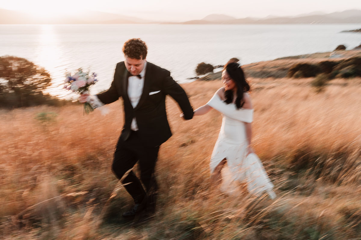 The beauty of the day was in its honesty. From the tears in their eyes before their first kiss to the joy that followed, every part of their ceremony felt deeply centred on faith, family, and the meaning of marriage itself. After the ceremony, we headed to Tranmere for portraits in an open field, blessed with a beautiful sunset over Hobart, kunanyi / Mount Wellington, and the city below.